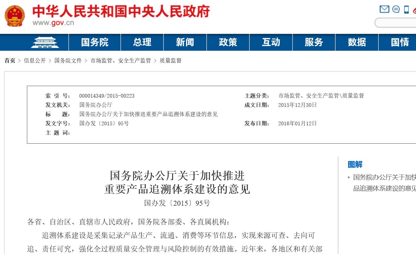 为了深入贯彻落实国务院办公厅《关于加快推进重要产品追溯体系建设的意见》(国办发[2015]95号)和《商务部 工业和信息化部 公安部 农业部 质检总局 安全监管总局 食品药品监管总局关于推进重要产品信息化追溯体系建设的指导意见(商秩发[2017]53号)》文件精神,由商务部搭建了国家重要产品追溯体系官方门户。