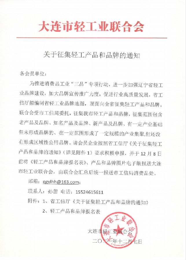 关于征求《“大连好产品”品牌产品 要求及评价方法》团体标准(征求意见稿)意 见的通知