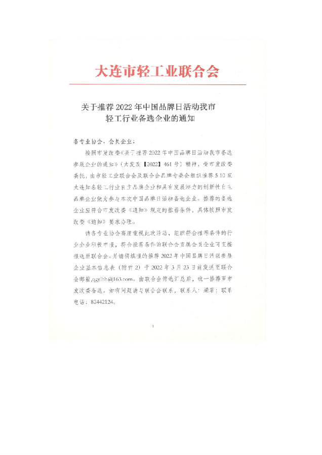 附件1关于推荐2022年中国品牌日活动我市备选参展企业的通知(发各地区、行业协会).docx