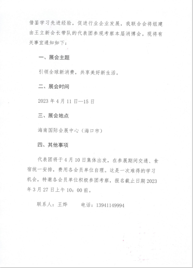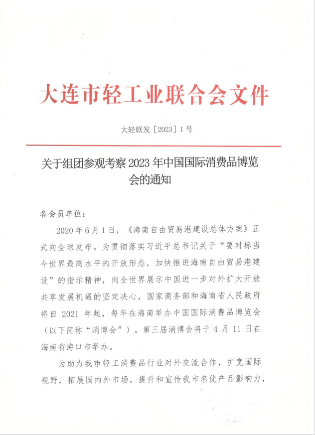关于组团参观考察2023年中国国际消费品博览会的通知