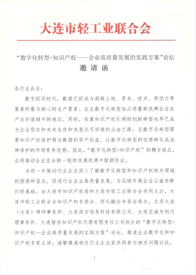 “数字化转型+知识产权--企业高质量发展的实践方案”论坛邀请函