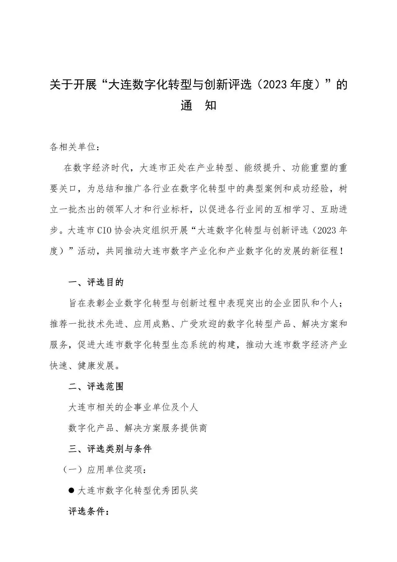 关于开展“大连数字化转型与创新评选(2023年度)”的通知