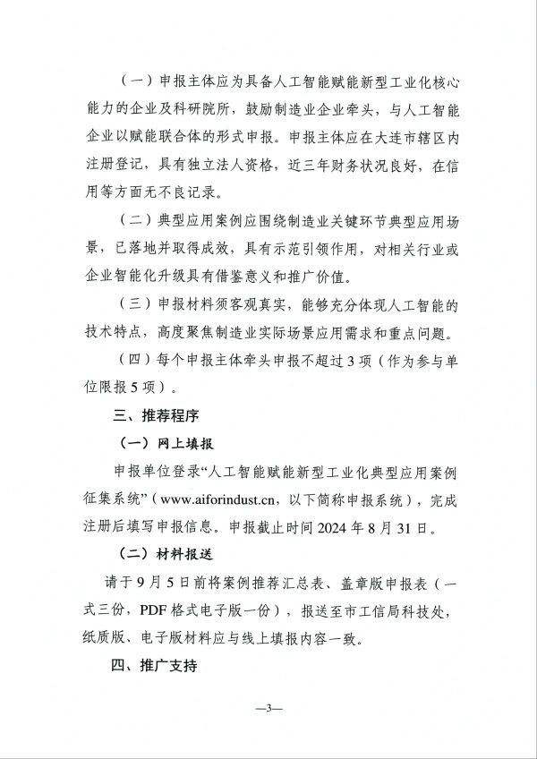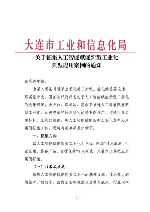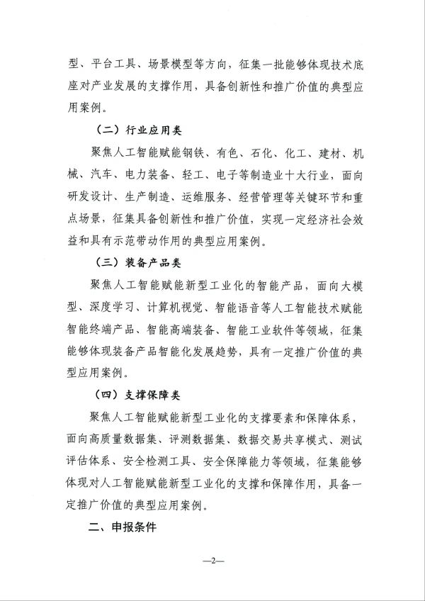 关于征集人工智能赋能新型工业化典型应用案例的通知