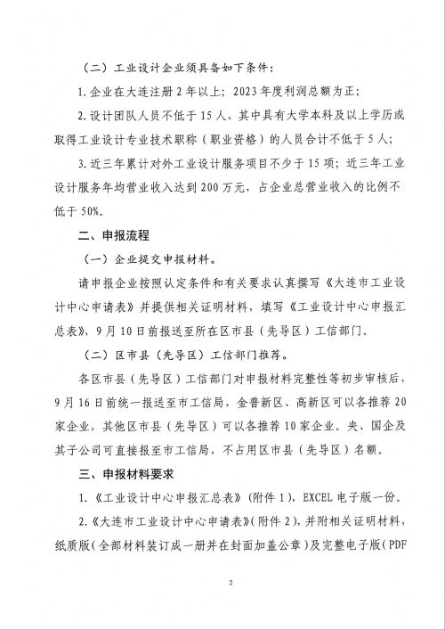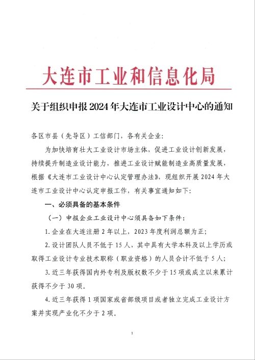 关于组织申报2024年大连市工业设计中心的通知